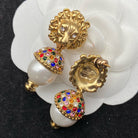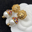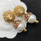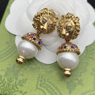 GG LION HEAD PEARL COLORED DIAMOND EARRINGS
